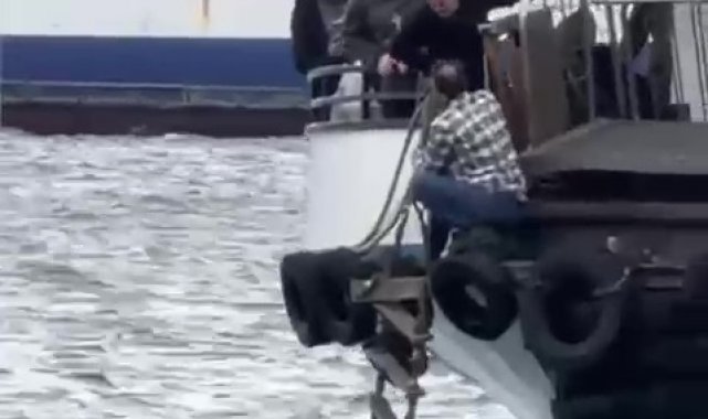 Öte yandan, teknenin alabora olarak batması ve denize düşen çaresiz vatandaşın kurtarılma anları vatandaşın cep telefonu kamerası tarafından saniye saniye kaydedildi. Görüntülerde teknenin dalgaların arasında kalarak alabora olduğu görülürken, denize düşen H.K.'nın vapur personeli ve vatandaşlar tarafından halat merdivenle kurtarıldığı anlar görülüyor.
