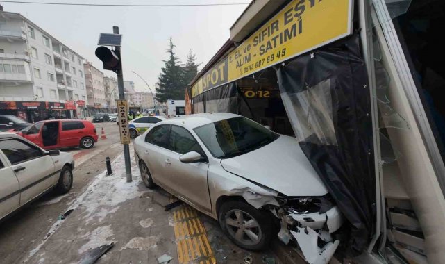 Karaman'da 3 kişinin yaralandığı kazada otomobil iş yerine daldı