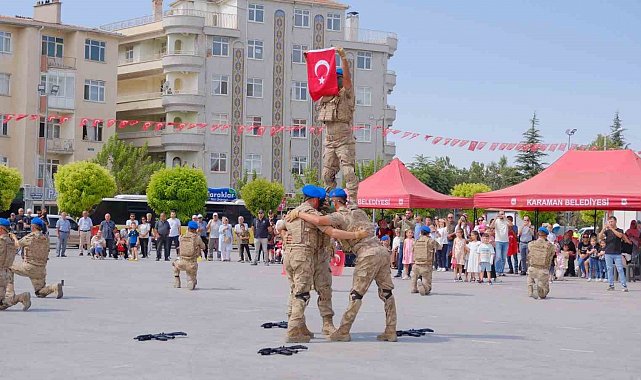 Kutlamalar Cumhuriyet Parkındaki Atatürk Anıtına çelenklerin koyulmasıyla başladı. Buradaki törene Karaman Valisi Mehmet Fatih Çiçekli ve il protokolü katıldı. Protokol üyeleri daha sonra resmigeçit töreninin yapılacağı Aktekke 15 Temmuz Demokrasi Meydanına geçti. Vali Çiçekli ve Belediye Başkanı Savaş Kalaycı tören alanında vatandaşların bayramını kutladı. Saygı duruşunda bulunulması ve İstiklal Marşı'nın okunmasıyla başlayan tören, günün anlam ve önemini belirten konuşmalar ve şiirlerin okunmasıyla devam etti. Karaman Jandarma Asayiş Komando Bölük Komutanlığının gösterisinin ardından resmigeçit töreni yapıldı. Konya 3. Ana Jet Üssü Muharip Uçakları'nın tören alanının üzerinden geçmesi vatandaşlar tarafından beğeni topladı. Tören alanında yapılan resmigeçit sonrası kutlamalar, Vali Mehmet Fatih Çiçekli ve Belediye Başkanı Savaş Kalaycı'nın Gazi Kültür ve Sanat Merkezi'nde tebrikleri kabul etmesiyle sona erdi.
