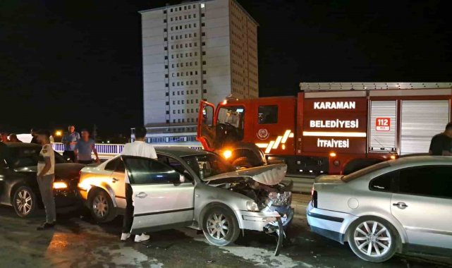Kaza, gece saat 23.55 sıralarında Hamidiye Mahallesi İbrahim Öktem Caddesi üzerinde bulunan üst geçitte meydana geldi. Edinilen bilgiye göre, üst geçit üzerinde 3 otomobil ve bir minibüsün karıştığı zincirleme kaza meydana geldi. Kazada 70 FD 160 plakalı otomobilde yolcu olarak bulunan L.B.S., yaralandı. İhbar üzerine kaza yerine itfaiye, sağlık ve polis ekipleri sevk edildi. Kazada yaralanan L.B.S. ambulansla Karaman Eğitim ve Araştırma Hastanesi'ne kaldırılarak tedavi altına alındı. Kaza nedeniyle bir süreliğine trafiğe kapatılan üst geçit, araçların olay yerinden kaldırılmasının ardından tekrar ulaşıma açıldı.