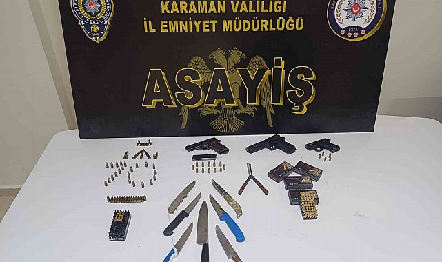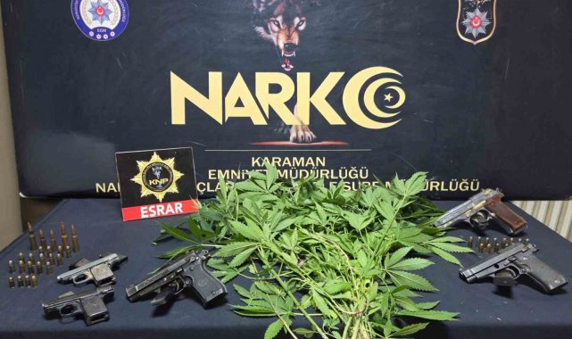 Karaman'da polisin yaptığı asayiş uygulamalarında uyuşturucu ve ruhsatsız silahlar ele geçirilirken, çeşitli suçlardan aranan 10 şahıs tutuklandı.