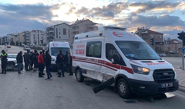Karaman'da ambulans ile otomobilin kavşakta çarpışması sonucu 3 kişi yaralandı.