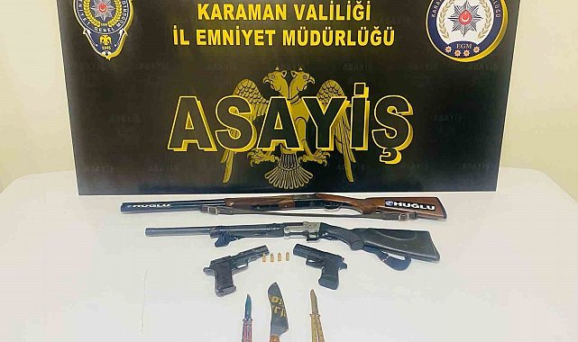 Karaman İl Emniyet Müdürlüğü'nün asayiş uygulamalarında uyuşturucu ve ruhsatsız silahlar ele geçirilirken, çeşitli suçlardan aranan 6 şahıs tutuklandı.