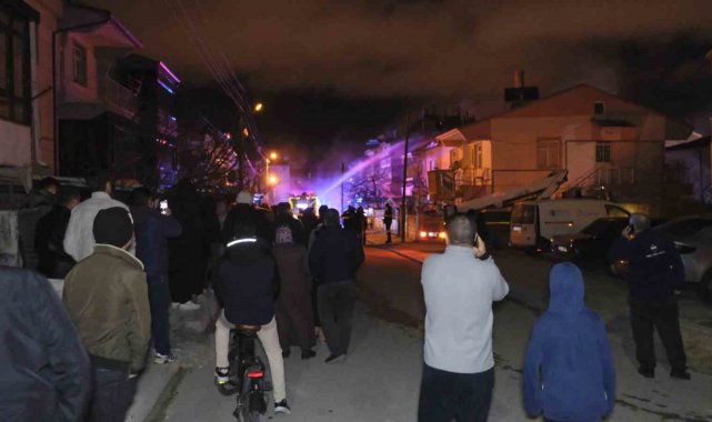 Karaman'da 2 katlı müstakil evin çatısında çıkan yangın geceyi aydınlatırken, mahalle sakinlerini sokağa döktü. Yangında 3 kişi dumandan etkilendi.