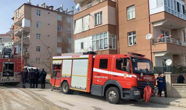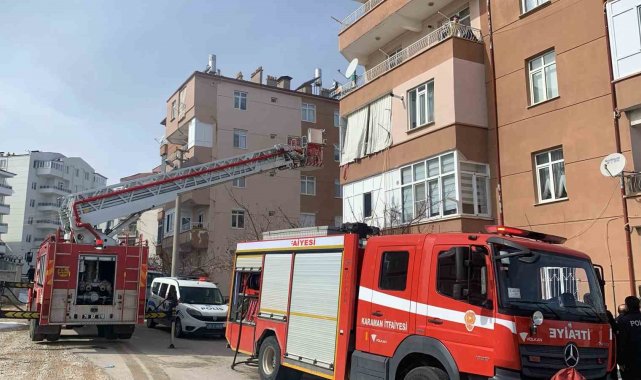 Karaman'da bir apartmanın giriş katındaki dairede çıkan yangın itfaiye tarafından söndürülürken, yoğun duman nedeniyle üst katta mahsur kalan 2 kişi uzatılan itfaiye merdiveniyle kurtarıldı.