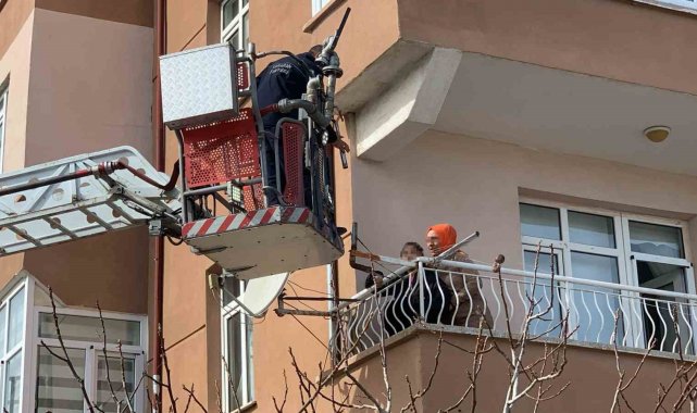 Karaman'da çıkan yangın nedeniyle balkonda mahsur kalan 2 kişiyi itfaiye kurtardı