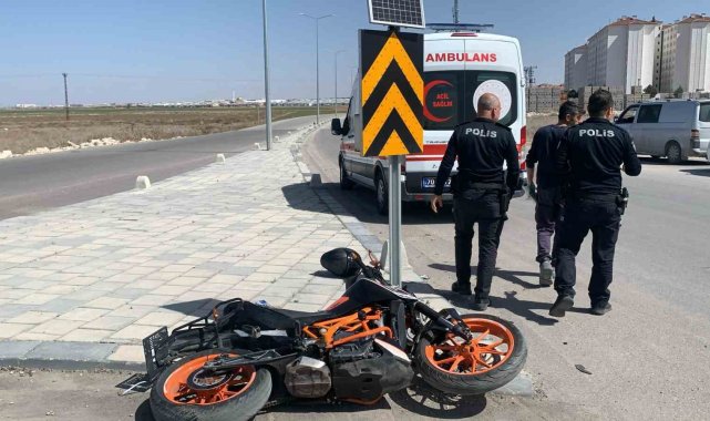 Karaman'da kontrolden çıkarak devrilen motosikletin sürücüsü ölümden döndü.