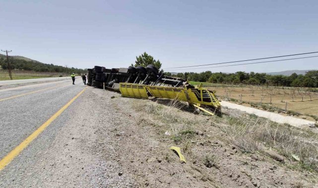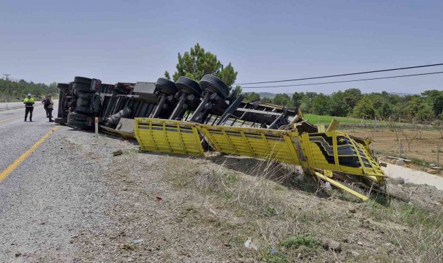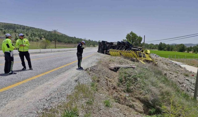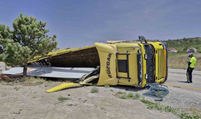Karaman'da kontrolden çıkan tırın yol kenarına devrilmesi sonucu sürücüsü yaralandı.