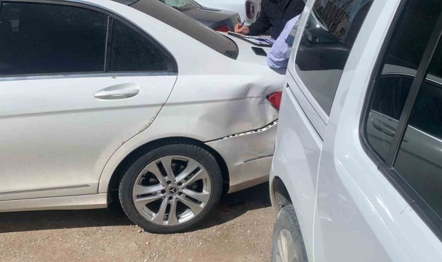 Karaman'da freni boşalan hafif ticari aracın geri geri giderek park halindeki 2 otomobile çarpması güvenlik kamerasına yansıdı.