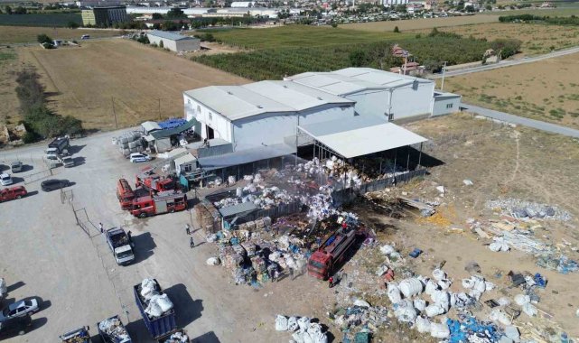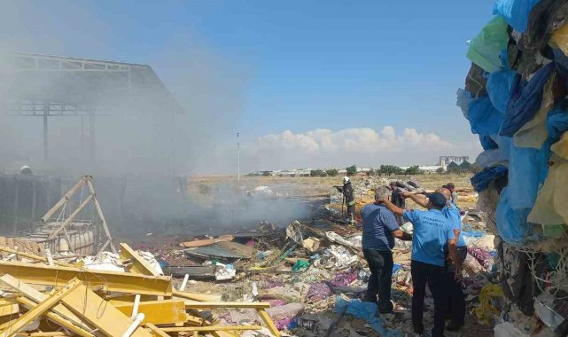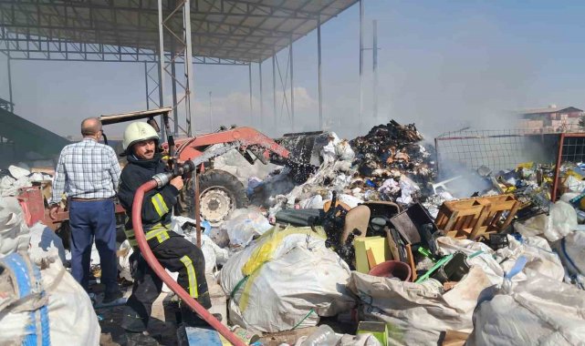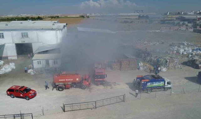 Karaman'da geri dönüşüm tesisinin bahçesindeki atıkların tutuşması sonucu çıkan yangın binalara sıçramadan söndürüldü.