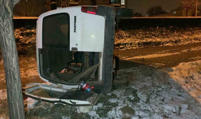 Karaman'da kontrolden çıkarak şarampole yuvarlanan hafif ticari aracın sürücüsü yaralandı.