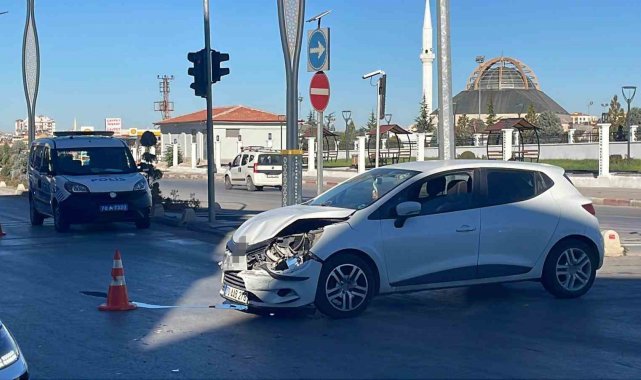 Karaman'da iki otomobilin kavşakta çarpışması sonucu meydana gelen kazada 1 kişi yaralandı. Kaza anı ise bir iş yerinin güvenlik kamerasına yansıdı.