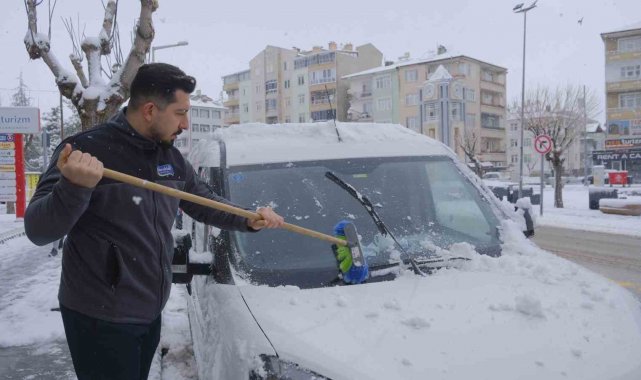 Dün akşam saatlerinde başlayan kar yağışı, ilerleyen saatlerde şiddetini artırarak sabaha kadar devam etti. Günün ilk ışıklarıyla birlikte bembeyaz bir manzaraya uyanan Karaman, adeta gelinlik giymiş görüntüsüyle dikkat çekti. Sabahın erken saatlerinde işlerine gitmek üzere evlerinden çıkan vatandaşlarsa karla kaplanan araçlarını kardan temizledi.