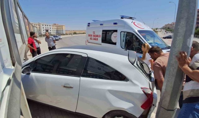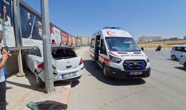 Karaman'da kontrolden çıkan otomobil aydınlatma direğine çarptı