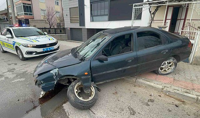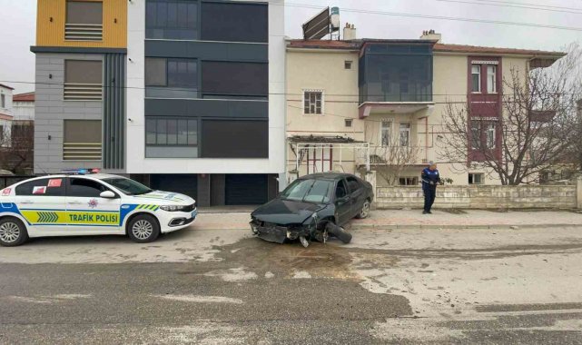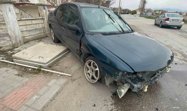 Karaman'da kontrolden çıkan otomobil kaldırıma çıktı