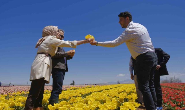 Lale üretim tesisinin sorumlusu Yavuz Selim Ateş, bu yıl 50 dekar alanda yaklaşık 15 milyon adet çiçek soğanı üretimi gerçekleştirdiklerini belirterek, "Arazilerimizi ücretsiz bir şekilde ziyarete açtık. 2026 yılında da geleneği bozmadık. İlk hafta sonu yoğun yağışa rağmen 30 binden fazla ziyaretçi ağırladık. Bu ayın 26'sına kadar toplamda 200 binden fazla ziyaretçiye ulaşmayı hedefliyoruz. Bu rakamlar bölgenin turizm ve ekonomi potansiyelini net bir şekilde ortaya koyuyor" dedi.