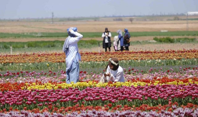 Karaman'da lale tarlasına ziyaretçi akını: 2 günde 30 bin kişi gezdi