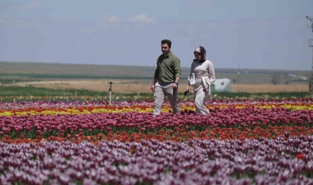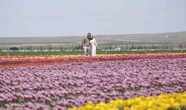 Lale tarlasını gezmeye gelen vatandaşlar ise sunulan görsel şölenden dolayı memnuniyetlerini dile getirerek, rengarenk çiçekler arasında hatıra fotoğrafı çektirdi.