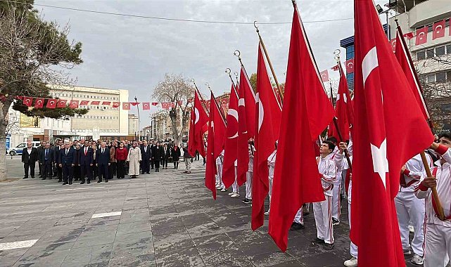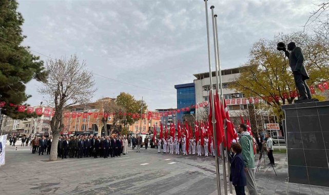 Sabahleyin öğretmenevi önünde bando eşliğinde yapılan kortej yürüyüşü İsmet Paşa Caddesi'nde bulunan Cumhuriyet Parkı'nda son buldu. Burada İl Milli Eğitim Müdürü Mehmet Çalışkan, Atatürk Anıtı'na çelenk bıraktı. Daha sonra saygı duruşunda bulunulması ve İstiklal Marşı'nın okunmasının ardından tören sona erdi.