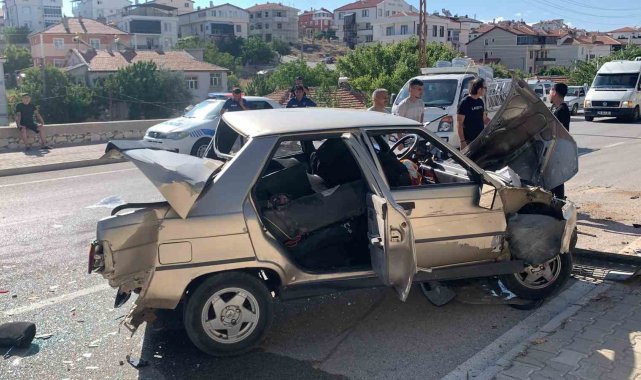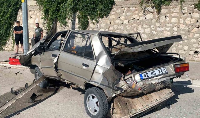 Karaman'da önce solladığı kamyonete sonra da aydınlatma direğine çarpan aracın sürücüsü yaralandı