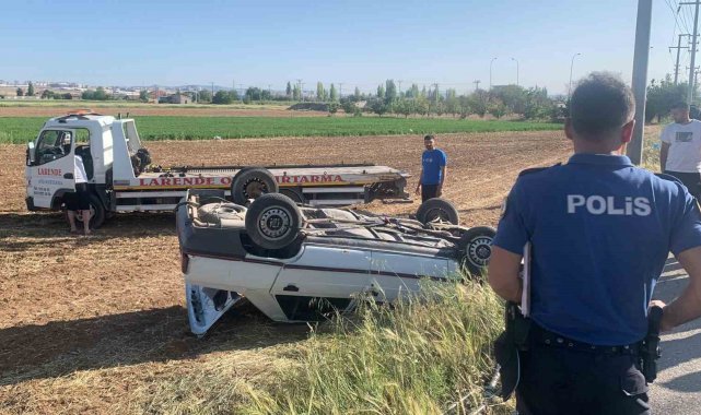 Karaman'da kontrolden çıkan otomobilin şarampole inerek tarlaya devrilmesi sonucu 1 kişi yaralandı.