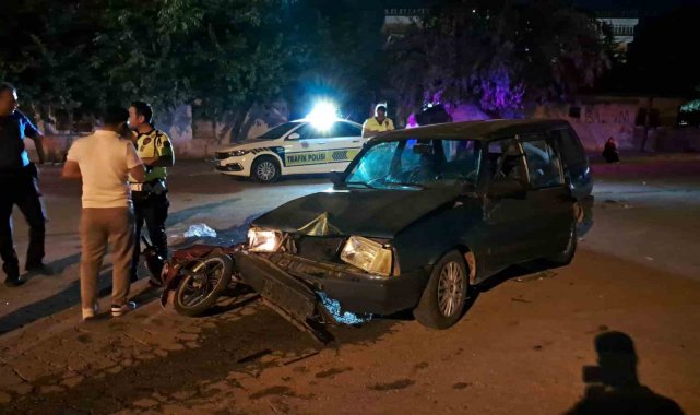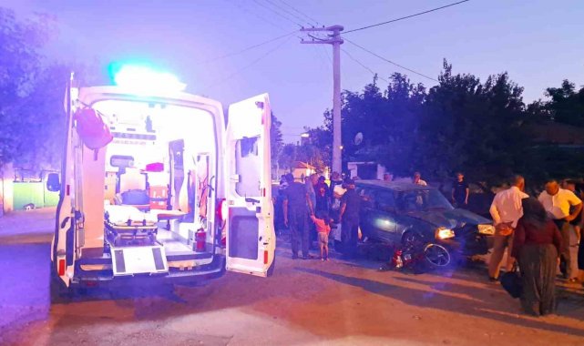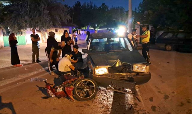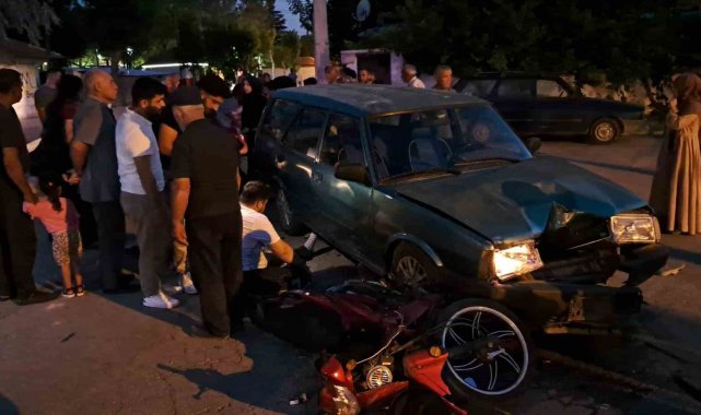 Karaman'da otomobil ile çarpışan motosikletteki anne ile oğlu yaralandı.