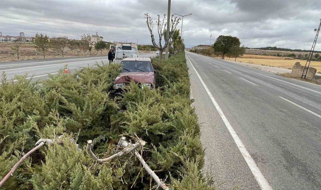 Karaman'da kontrolden çıkan Tofaş marka otomobilin refüje çıkması sonucu meydana gelen kazada sürücü baba ile 3 yaşındaki kızı yaralandı.