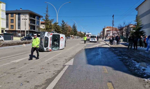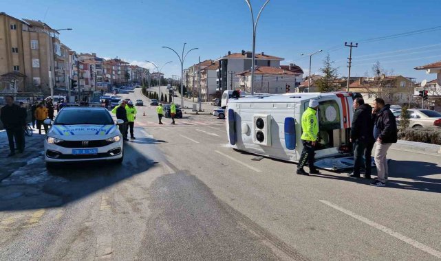 Karaman'da hasta taşıyan ambulansın otomobille çarpışarak devrilmesi sonucu, 3 sağlık görevlisi 5 kişi yaralandı.