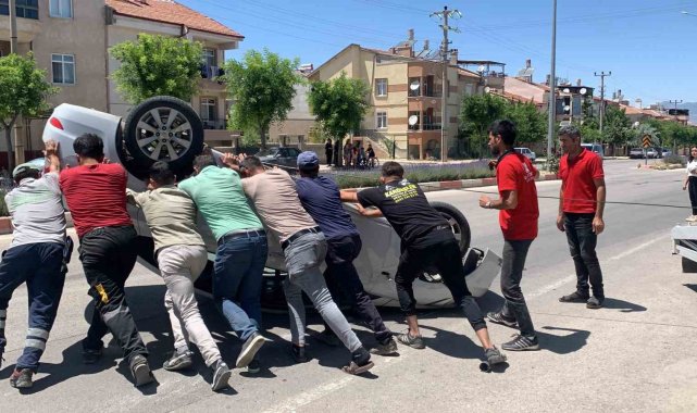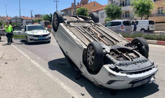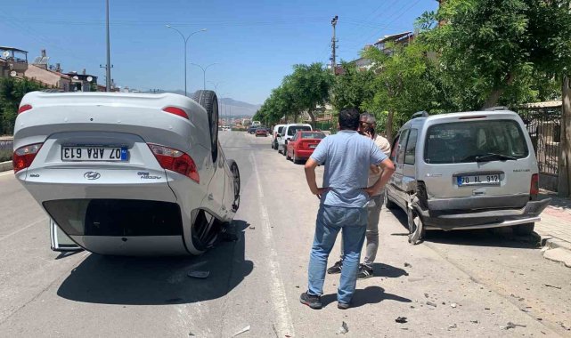 Karaman'da park halindeki araca çarpan otomobil ters döndü: 2 yaralı