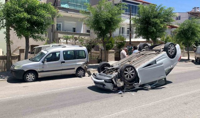 Karaman'da park halindeki hafif ticari araca çarpan otomobil ters döndü. Kazada sürücü ile 4 yaşındaki kızı yaralandı.