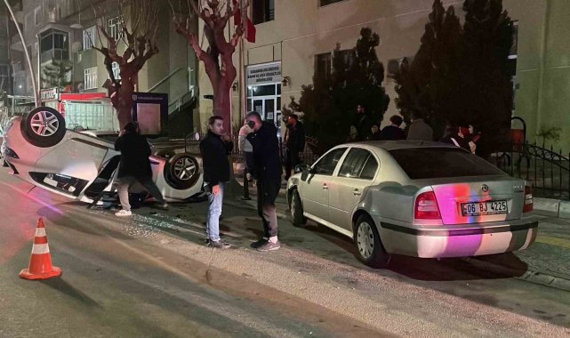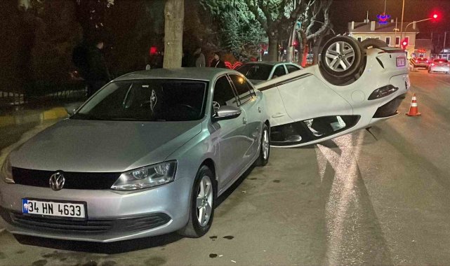 Karaman'da park halindeki araçlara çarpan otomobil ters döndü