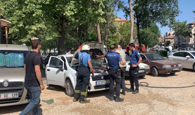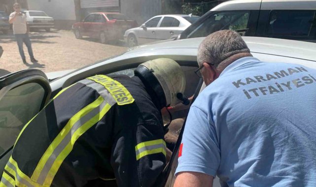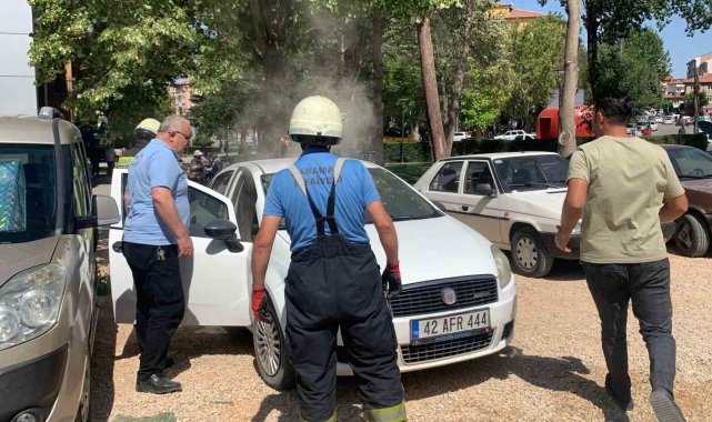 Karaman'da park halindeki otomobilde bulunan telefon bataryasının aşırı sıcaktan dolayı patlaması sonucu çıkan yangın büyümeden söndürüldü.