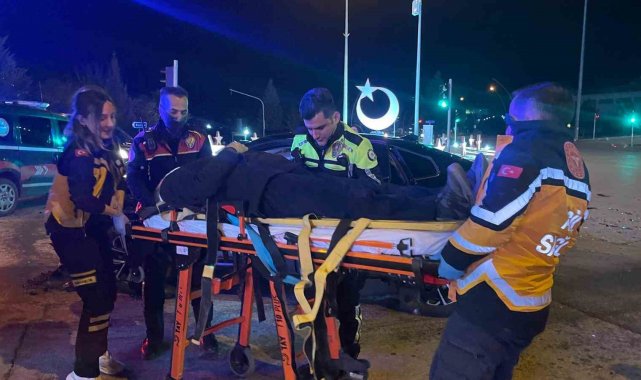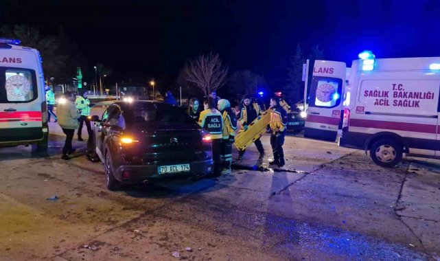 Karaman'da polisin "dur" ihtarına uymayarak kaçan otomobil kavşakta başka bir otomobille çarpıştı. Ortalığın savaş alanına döndüğü kazada şüphelilerin çarptığı otomobildeki 3 kişi yaralandı.