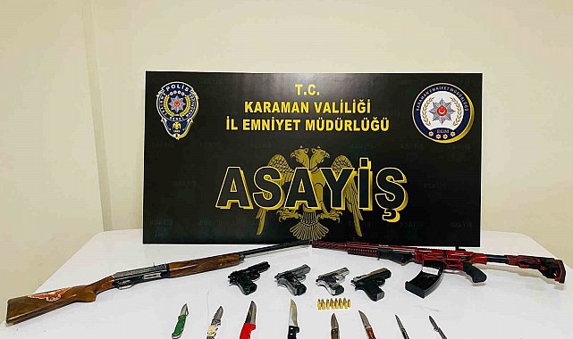 Karaman'da polisin yaptığı asayiş uygulamalarında ruhsatsız silahlar ve uyuşturucu ele geçirilirken, 95 adet araçta trafikten men edildi.