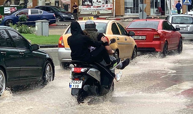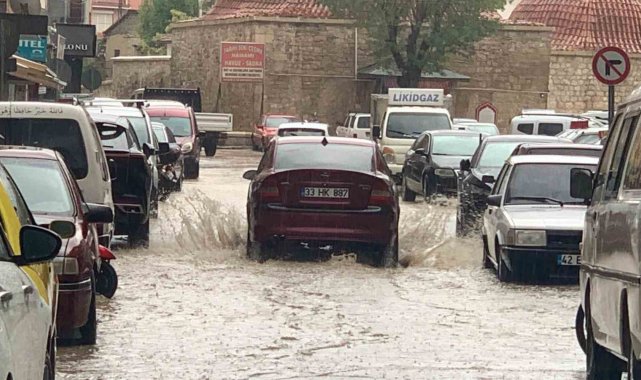 Karaman'da aniden başlayan sağanak yağış sonrası yollar göle döndü, vatandaşlar zor anlar yaşadı.