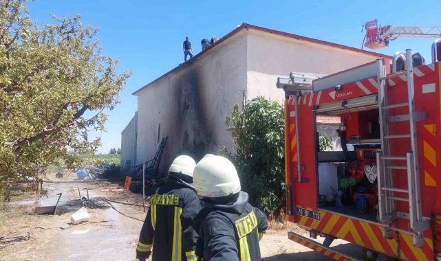 Karaman'da tahtaların tutuşması sonucu çıkan yangında alevler çatıya sıçradı