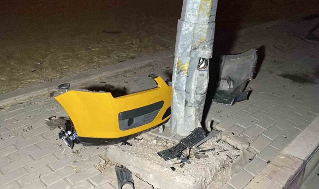 Karaman'da kontrolden çıkan ticari taksi, yol kenarındaki aydınlatma direğine çarptı. Sürücü kazayı yara almadan atlatırken, araçta hasar meydana geldi.