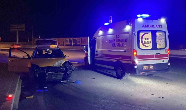 Karaman'da ticari taksi aydınlatma direğine çarptı