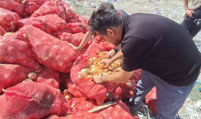 Motosikletleriyle soğanların atıldığı yere gelen bazı vatandaşlar ise bir kısmı çürümüş olan soğanlardan sağlam olanları çuvala doldurup götürdüler. Soğanların kim ya da kimler tarafından döküldüğü ise araştırılıyor.