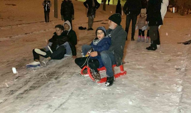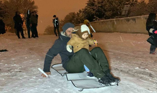 Karaman'da yağan kar yağışı kısa sürede kenti beyaza bürüdü. Karın tadını çıkarmak isteyen vatandaşlar ise evlerinden getirdikleri poşetler ve sinilerle ailecek Karaman Kalesi'ne akın etti. Kalenin girişindeki yokuşta 7'den 70'e herkes, poşetlerini, sinilerini ve kızaklarını alarak kendini eğlenceye kaptırdı. Kayak yapan vatandaşlar aylardır bugünü beklediklerini ve karın tadını çıkardıklarını söylediler.