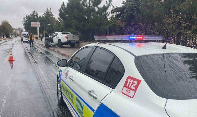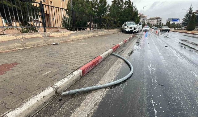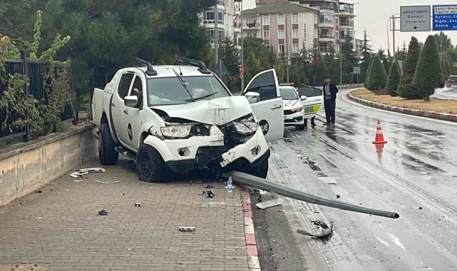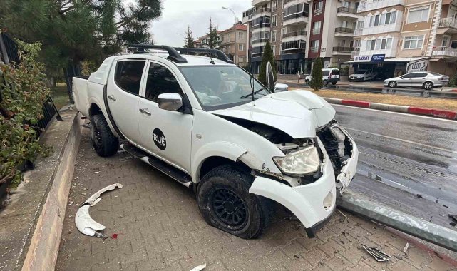 Karaman'da yağmur nedeniyle kayganlaşan yolda kontrolden çıkan pikap kaldırımdaki aydınlatma direğini devirerek beton duvara çarptı. Kazayı araç sürücüsü yara almadan atlatırken araçta maddi hasar meydana geldi.