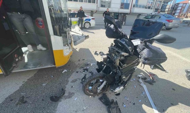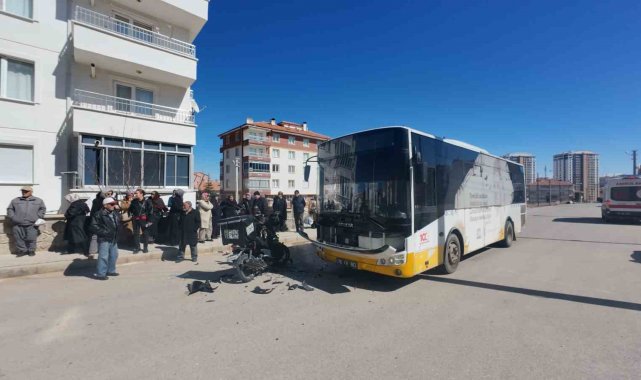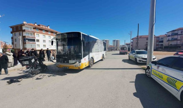 Karaman'da belediye otobüsüyle çarpışan motokuryenin sürücüsü yaralanırken, kaza anı kameraya yansıdı.