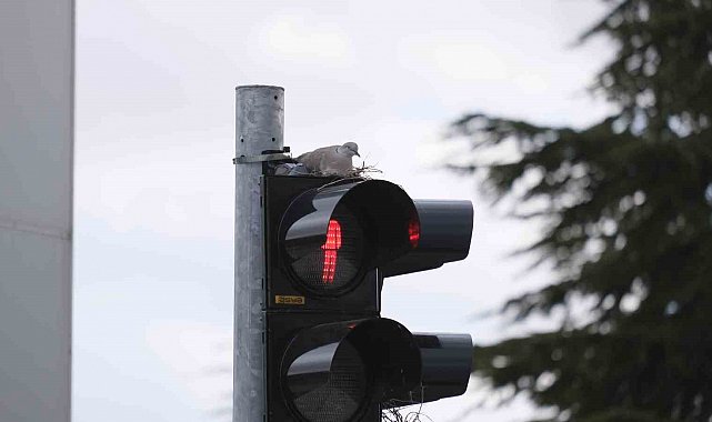 Sakabaşı Mahallesi Zeytin Dalı Bulvarı üzerinde yer alan Valilik Kavşağı'nda, gün boyunca yoğun araç trafiğinin yaşandığı bölgedeki trafik lambalarından birinin üst kısmına yuva yapan kumru ilginç görüntü oluşturdu. Genellikle ağaçlık ve sakin alanları tercih eden kuşların aksine, kumrunun trafik lambasını seçmesi şaşkınlıkla karşılandı. Kırmızı ışıkta duran sürücüler, başlarını kaldırdıklarında karşılaştıkları bu manzara karşısında hayretlerini gizleyemedi.