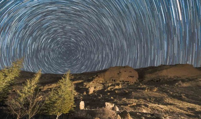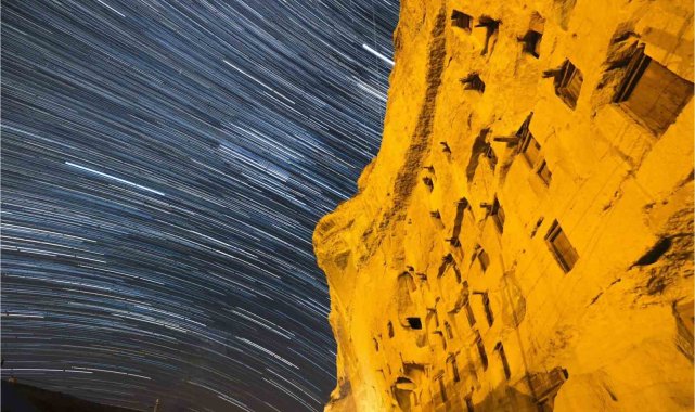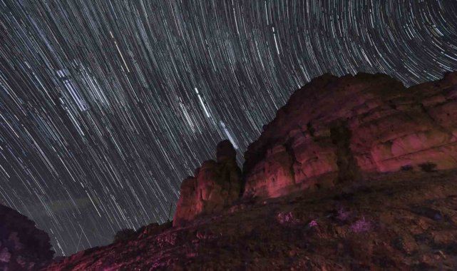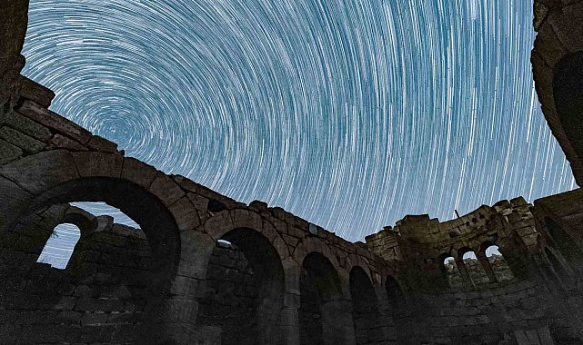 Karaman'ın tarihi mekanlarından uzun pozlama ile çekilen gökyüzü fotoğraflarında yıldızlar görsel şölen oluşturdu.