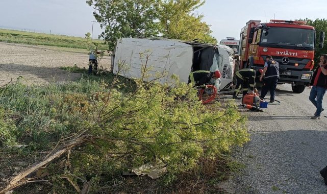 Karaman'da tarım işçilerini taşıyan minibüsün yol kenarına devrilmesi s...