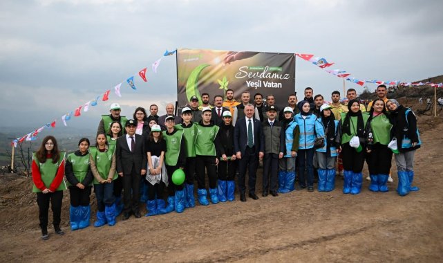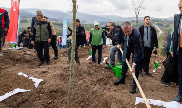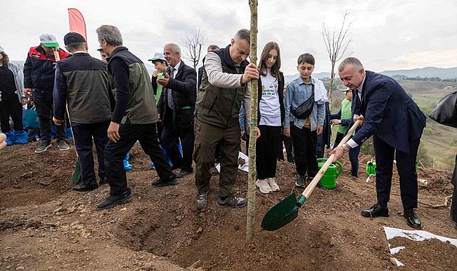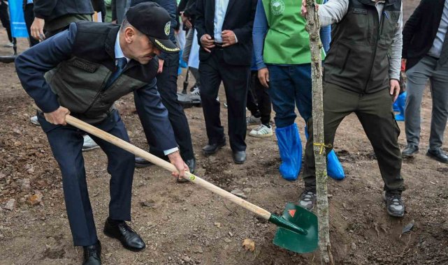 Konuşmaların ardından protokol üyeleri, çocuklarla birlikte 3 bin fidanı toprakla buluşturdu, can suyunu verdi.