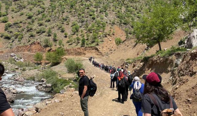 Elazığ'da ters lalelere dikkat çekmek amacıyla Karanlık Dere Kanyonu'nda doğa yürüyüşü düzenlendi.