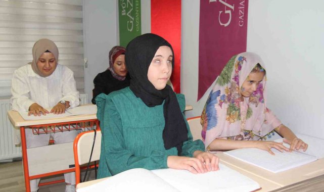 Gaziantep Büyükşehir Belediyesi tarafından yaz kursları kapsamında görme engelli bireylere yönelik başlatılan "Braille Alfabesi ile Kur'an-ı Kerim Kursu" büyük ilgi görüyor. Kursa katılan görme engelliler, her harfine dokunarak okudukları Kur'an ile gönül dünyalarını aydınlatıyor. Braille alfabesiyle hazırlanan materyallerle Kur'an-ı Kerim'i parmaklarıyla okuyan ve öğrenen görme engelli öğrenciler, karanlık dünyalarını Kur'an-ı Kerim'i ile aydınlatmanın mutluluğunu yaşıyor.