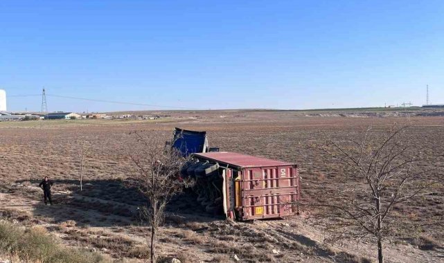 Konya'nın Karapınar ilçesinde kontrolünden çıkan çekicinin devrilmesi sonucu sürücü yaralandı.
