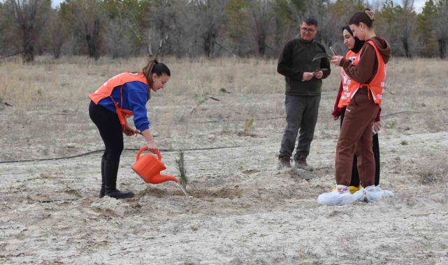 Etkinliğe katılan öğrenciler, Karapınar'daki ağaçlandırma çalışmalarında yer almaktan büyük mutluluk duyduklarını belirtti.